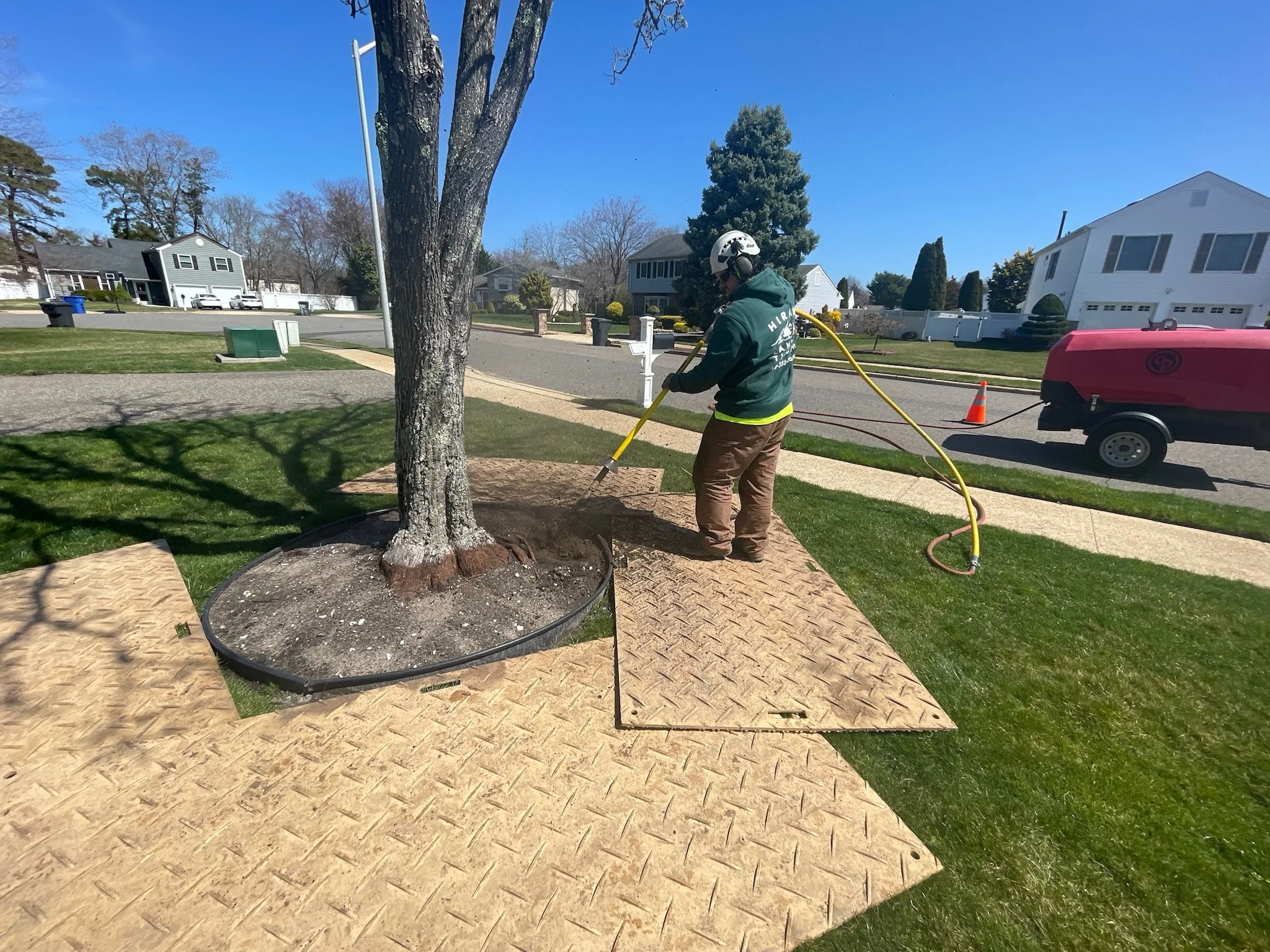 Soil aeration loosens compacted ground, allowing air, water, and nutrients to reach tree roots more effectively. We can also prune the roots to correct root girdling.